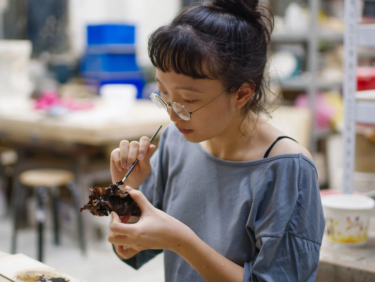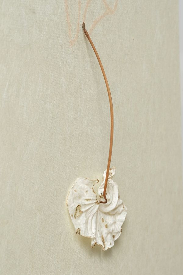 Si-Qi PENG’s artistic practice stems from a spiritual extension of Eastern imagery. Through moments of natural decay—such as the falling leaves of paper mulberry and bleeding-heart trees—she captures the subtle messages of the cosmos, contemplating the cyclical balance of growth, decline, and regeneration. Real leaves are encased in paper fiber and porcelain slip, and during the firing process, both paper and foliage are consumed by heat, leaving behind intricate traces—textures and perforations as delicate as the marks of time—transformed into ceramic surfaces. Layered with glazes and metallic finishes, and with leaf stems patiently coated in natural lacquer, the works exude a sense of stillness and introspective spirituality. These pieces crystallize the fragility of both ceramics and life itself, serving as a medium for dialogue between the viewer and nature, material forms, and inner perception—echoing Eastern philosophies of harmony with nature and the interdependence of all beings.